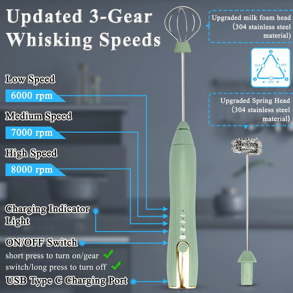 Powerful Rechargeable Handheld Milk Frother – Electric Foam Maker & Drink Mixer for Lattes, Coffee & Eggs
